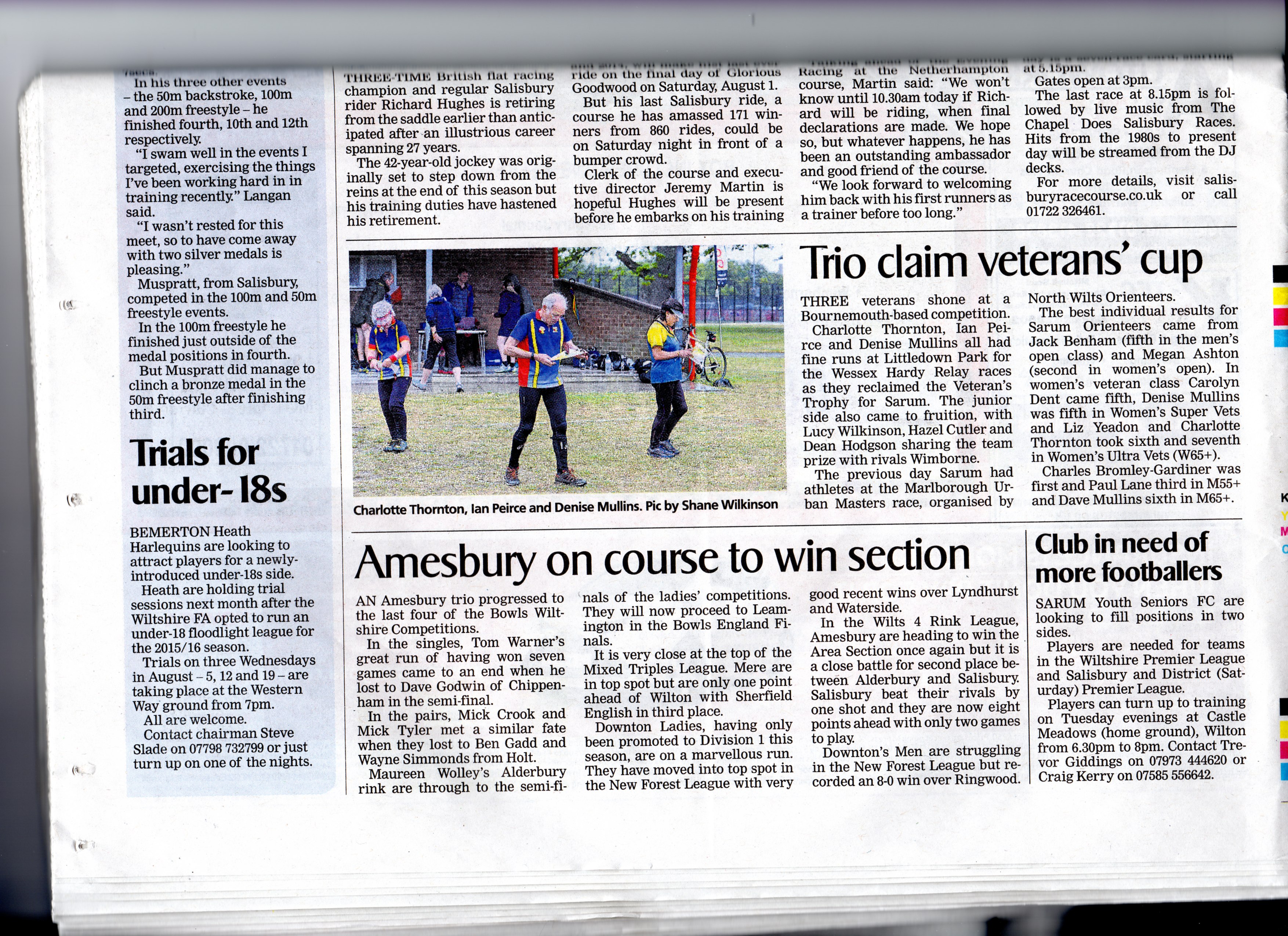 Charlotte, Ian and Denise regained the Sarum Trophy at this year’s Wessex Hardy Relays and earned the club another good report in The Salisbury Journal (23/07/2015), together with another of Shane Wilkinson’s fine photos. The report also covers the previous day’s results from the Marlborough urban race. All in all we have had excellent coverage of our Summer activities from The Journal, let’s hope this will continue over the Winter months.